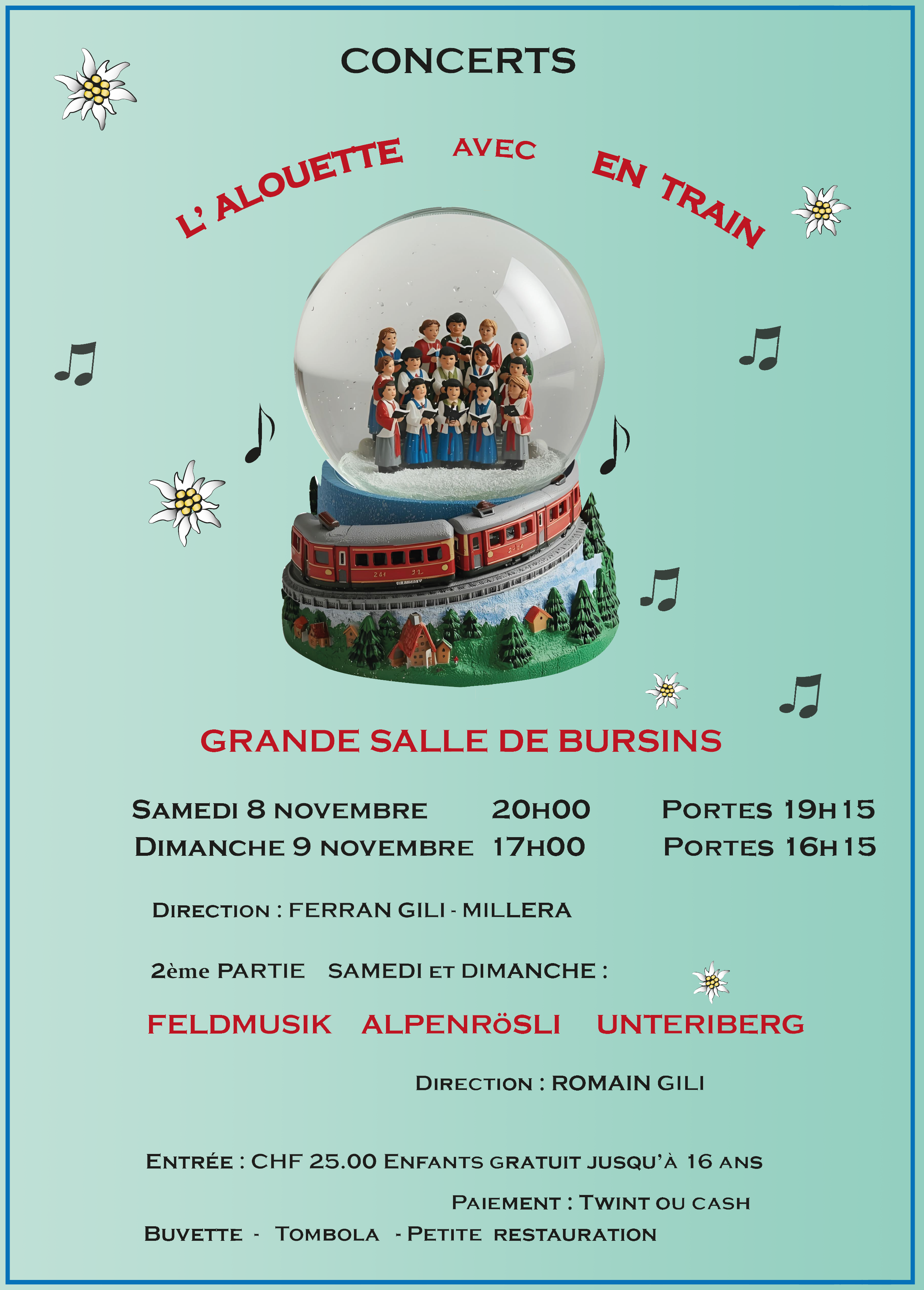 Samedi 8 novembre à 20h et dimanche 9 novembre à 17h se tiendront nos soirées annuelles à la Grande salle de Bursins,
